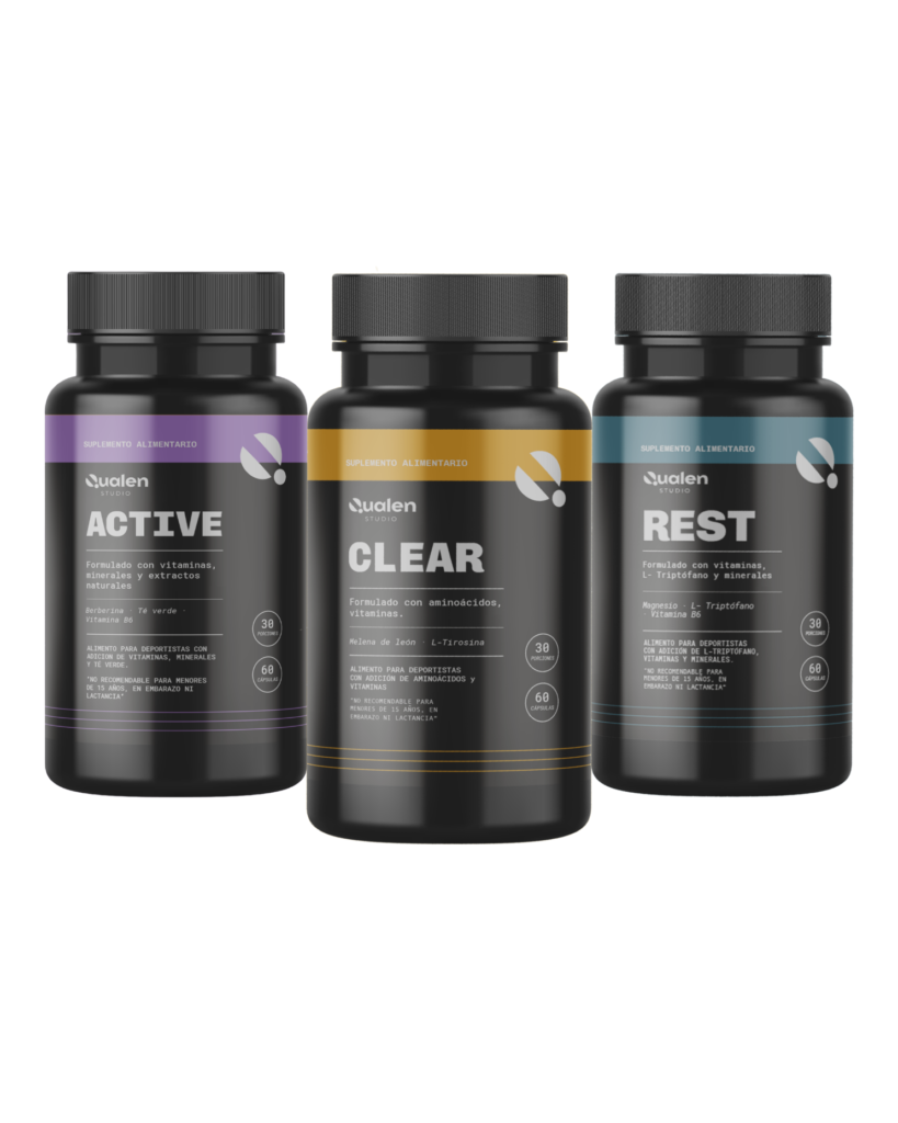 2 cápsulas por producto al día. CLEAR con el desayuno, ACTIVE con el almuerzo, REST 30–60 minutos antes de dormir. Total: 6 cápsulas diarias si usas el sistema completo.